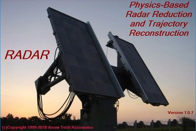RADAR is a software product for the reduction of live fire ballistic test data captured with a doppler tracking radar. It uses a physics-based model to re-construct the complete trajectory and determine drag and spin as well as rocket motor burn characteristics (burn on/off and thrust) when a rocket motor is present. The trajectory reconstruction is accomplished by simultaneously fitting the measured radial velocity, radar elevation, radar azimuth and spin data. RADAR contains bi-directional interfaces with Arrow Tech’s PRODAS software.